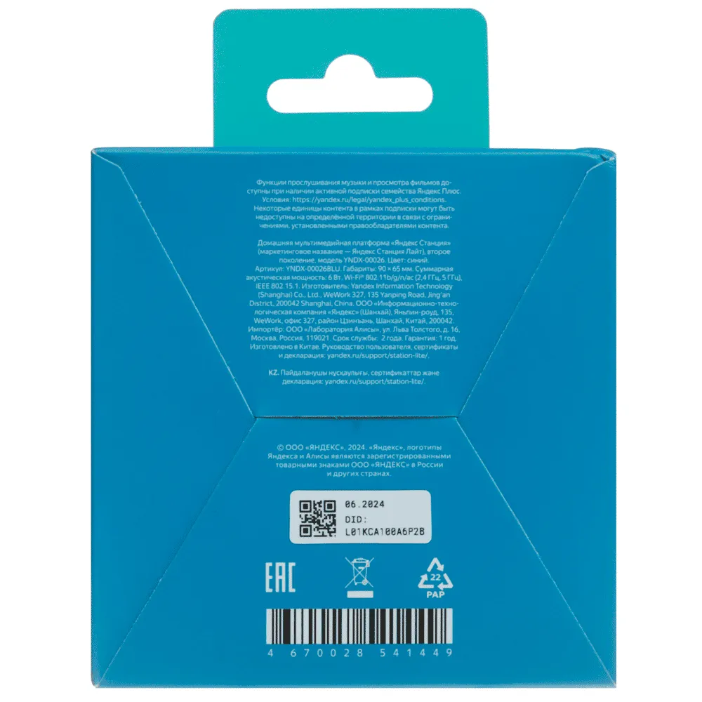 Акустическая система Яндекс.Станция Лайт 2 с Алисой (Синий)